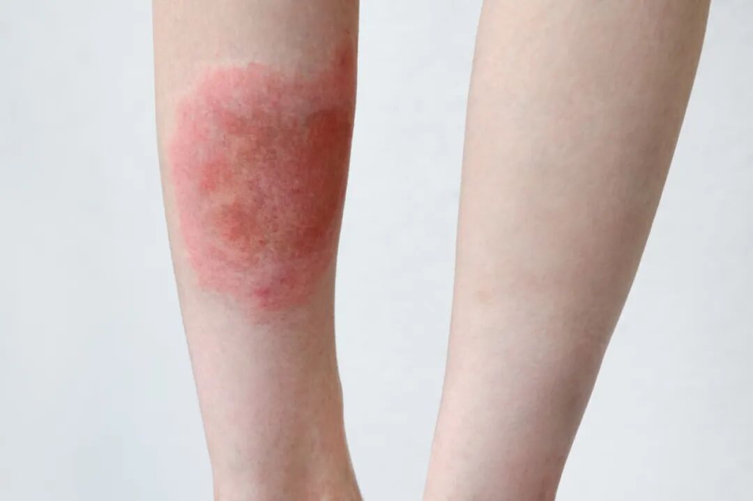 蜱虫叮咬后最常见的反应是,叮咬处可能出现轻度的红肿、瘙痒、疼痛感,部分叮咬区域出现硬结、丘疹或溃疡结痂。